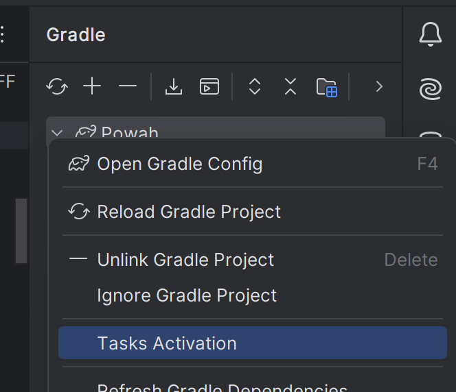 - Open the Gradle tool window on the right, and right-click the Gradle project.